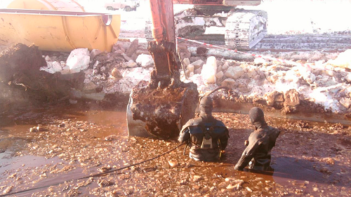 Строительно-монтажные работы, выполняемые под водой при возведении гидротехнических сооружений (например, судоремонтных Слипов и Эллингов), при прокладке трубопроводов и т.д. Большинство видов подводно-технических (водолазных) работ выполняется непосредственно водолазами. Они обследуют и расчищают дно акватории, отбирают образцы грунта, производят буровзрывные работы, монтаж строительных конструкций, подводную сварку и резку металла. Водолазное оборудование для подводно-технических (водолазных) работ размещается на водолазных станциях, которые могут располагаться на берегу, на льду или на специальных плавучих средствах — водолазных Ботах, Баржах, дноуглубительных судах.